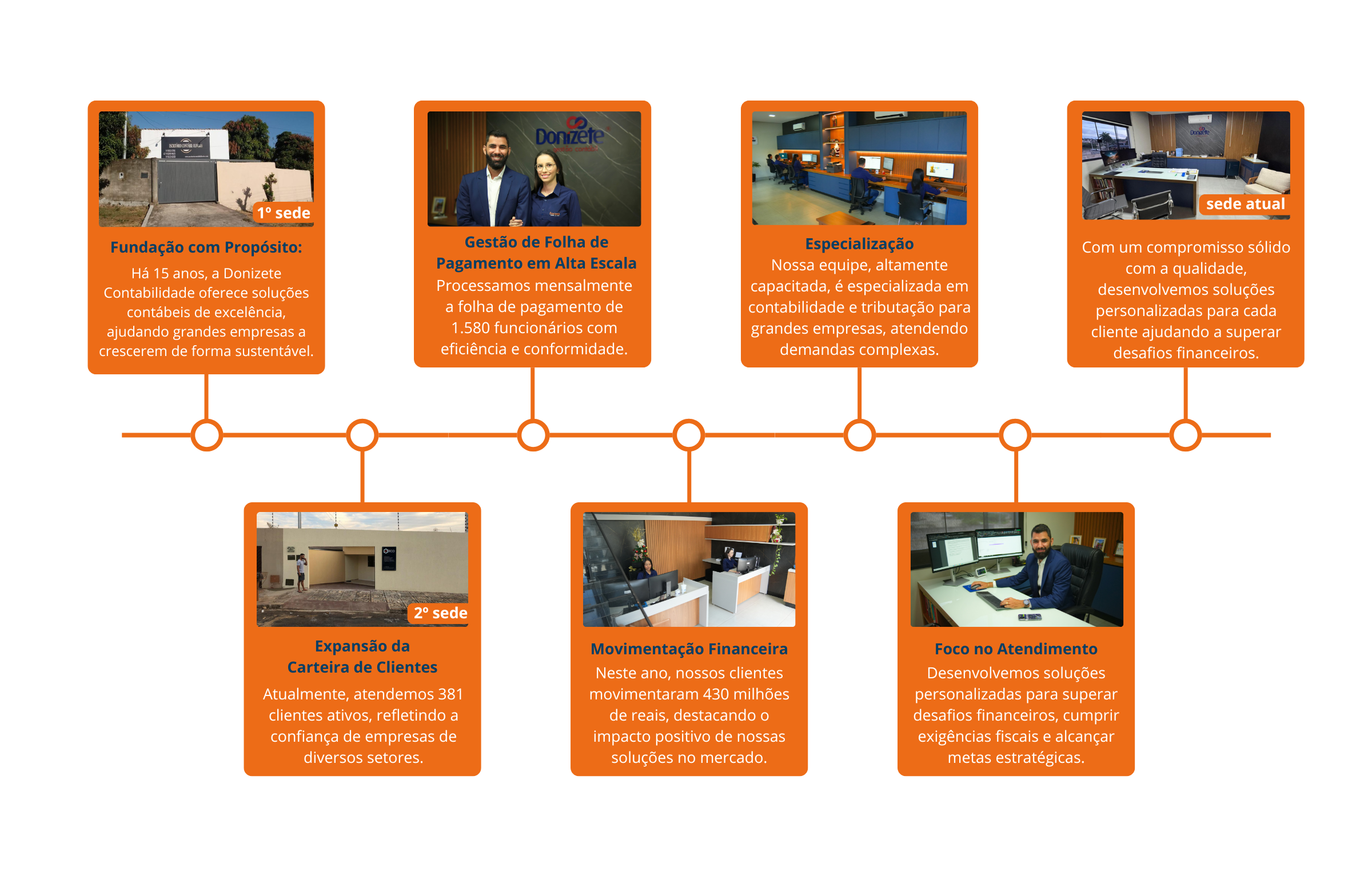 Há 15 anos, a Donizete oferece soluções contábeis de excelência para grandes organizações, com serviços personalizados e alinhados às necessidades de cada cliente. Nossa experiência abrange diversos setores, ajudando empresas a otimizar a gestão financeira, cumprir exigências fiscais e alcançar objetivos estratégicos. Contamos com uma equipe altamente capacitada, especializada em contabilidade e tributação de grandes corporações, e nos destacamos pelo atendimento de qualidade, focado em resolver desafios e promover sustentabilidade financeira a longo prazo.